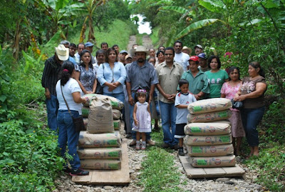 Tlapacoyan, Ver.- La gran gestora de los Tlapacoyenses Nayeli Jarillo el pasado fin de semana realizo la entrega de material de construcción, (cemento y grava), para mejorar tramos de los caminos rurales que comunican a Pozo Azul y las chichis, perteneciente a la comunidad de Piedra Pinta.